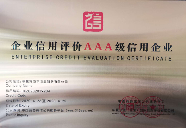 企業(yè)信用評價AAA級信用企業(yè)
